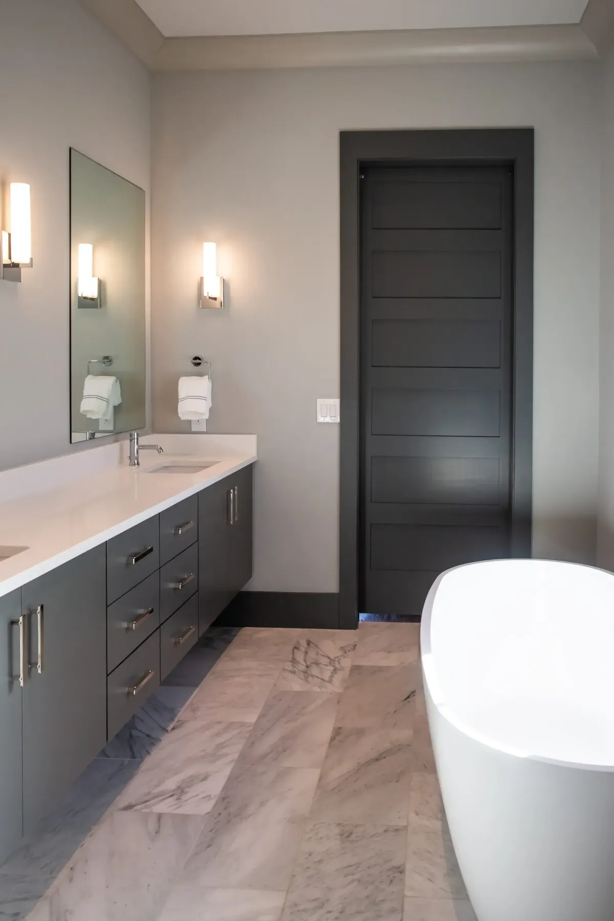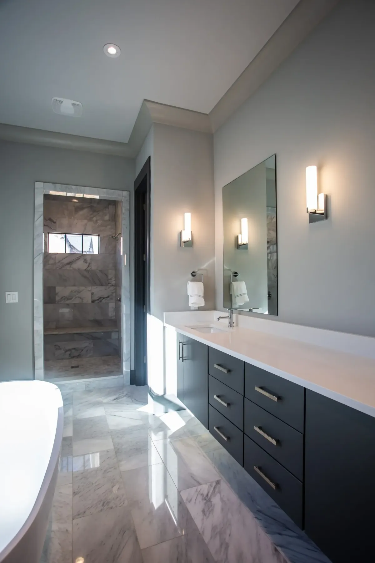 Since we are a design studio, we aren't limited to "standard" sizes. Whether you have a tiny powder room that needs a 24-inch floating vanity or a grand primary suite requiring a 90-inch double vanity, we design the cabinetry to fit your wall-to-wall measurements exactly.