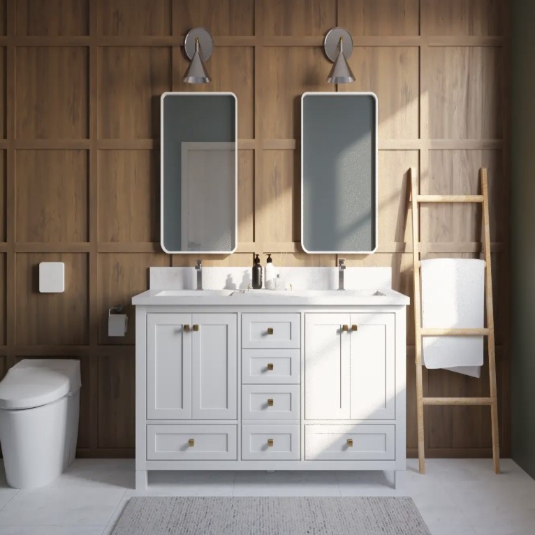 Absolutely. You have full control over the cabinet style, wood species, paint or stain color, and hardware. We also offer internal customizations like integrated power outlets for hair dryers, tiered drawer organizers, and pull-out laundry hampers.